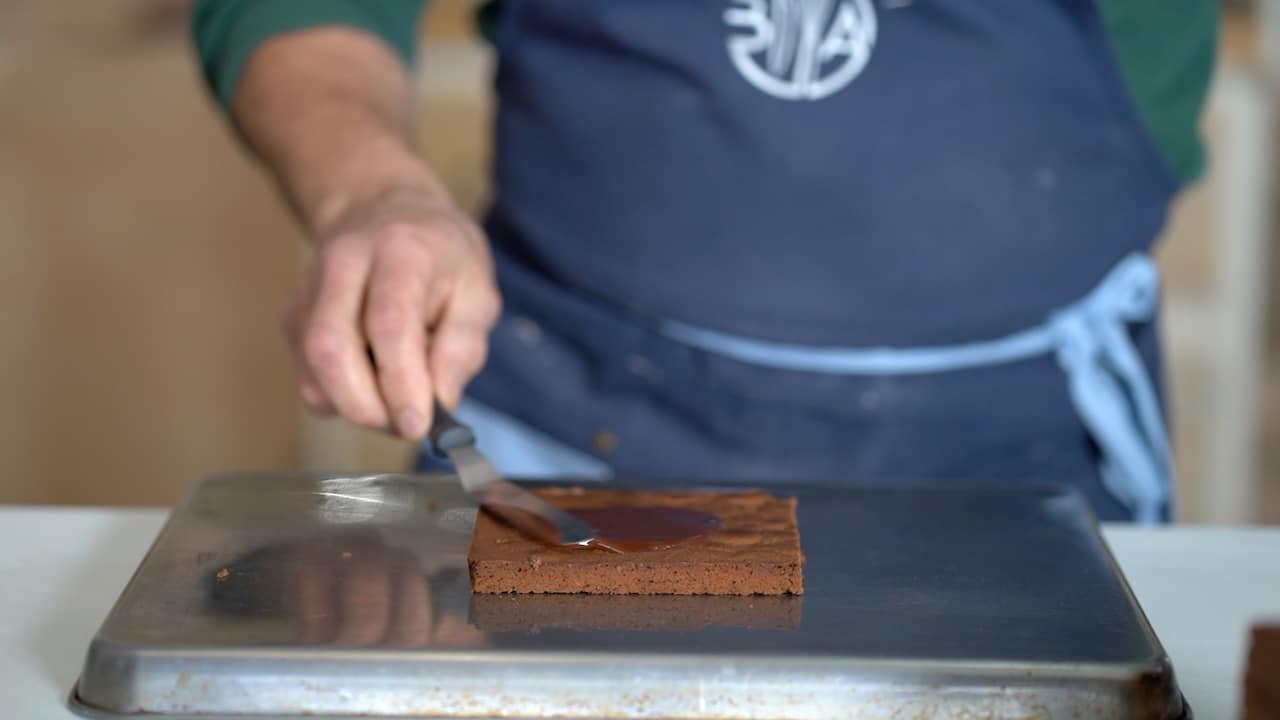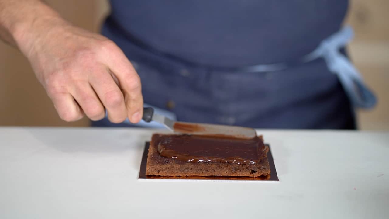 - Spread the first layer of ganache over the sponge, ensuring it touches all sides of the cake ring for structural integrity. Avoid overloading; the ganache layer's thickness should match that of the sponge for balanced proportions.