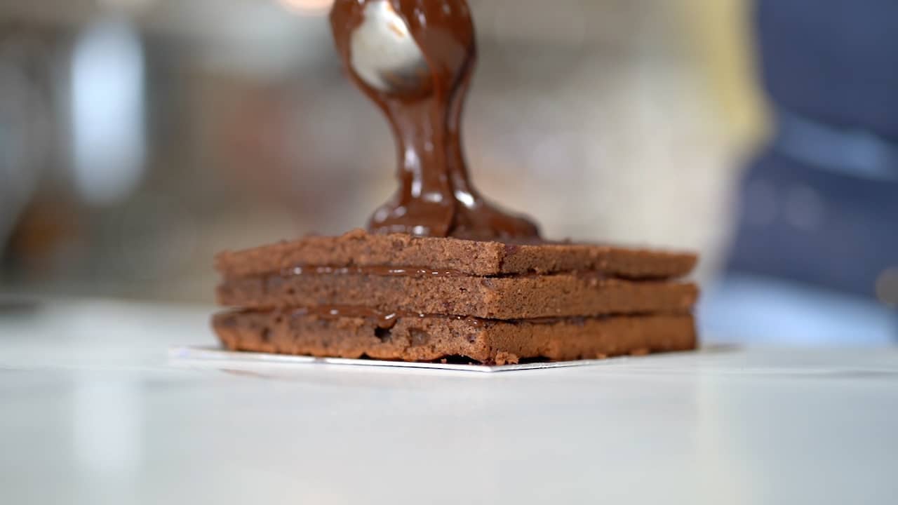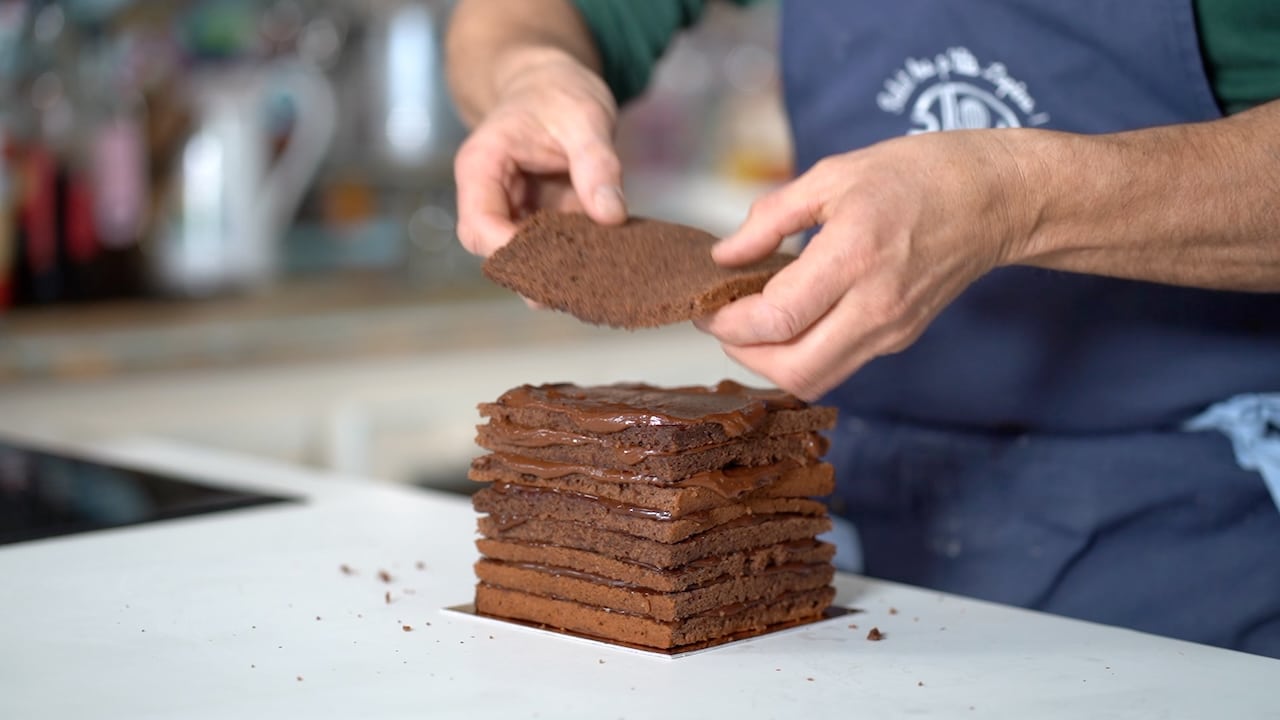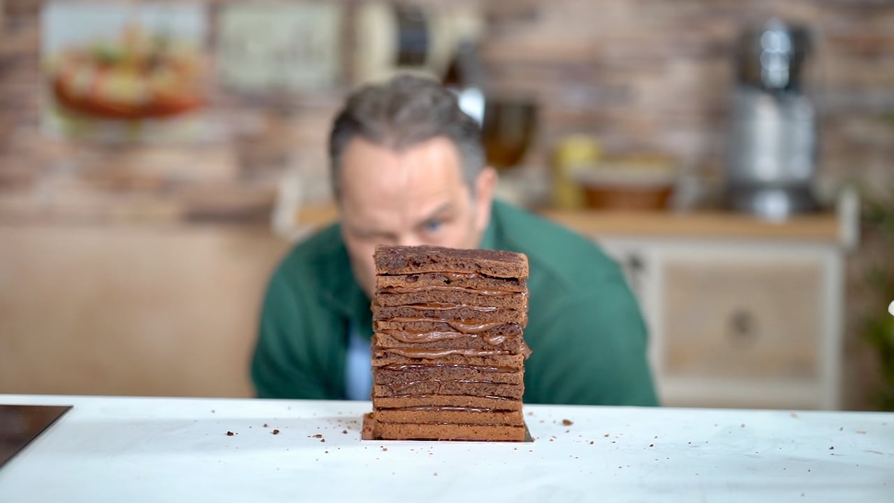 Think you've mastered the layer cake? After the success of our 12-layer challenge, it's time to double down. Introducing your next project: the 24-Layer Chocolate Cake Tower. Built completely freehand without the use of a mold, this architectural marvel relies on patience and precision. It features luxurious tiers of delicate almond-chocolate sponge, gently moistened with a vibrant red fruit punch, all sandwiched together with layers of rich, silky chocolate ganache.