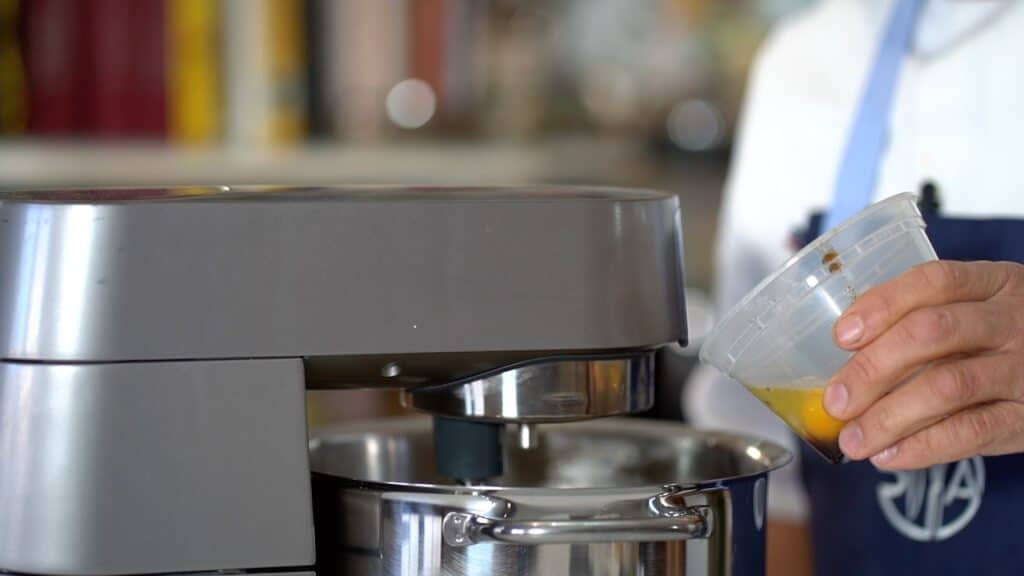 - Add almond meal, sugar and flour and give a few pulses. Reserve powders in a separate container.