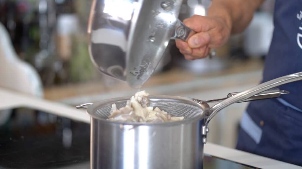- Fill the pot about half full of water. When it begins to simmer, add a generous tablespoon of grey salt or Kosher salt.