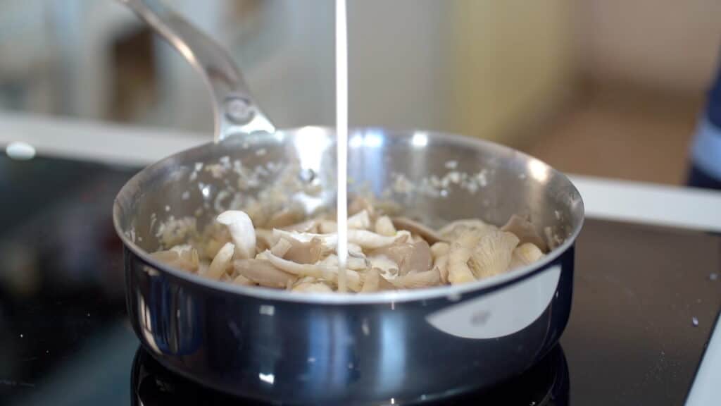 - In a thick bottom pan or sautoir over medium-low heat, start by melting the butter. When the fat has melted and foaming add the shallots and leave to "sweat" for a couple of minutes until the shallots are translucent. Add mushrooms, season with salt and pepper and sautée for 2 mins. Add heavy cream, cover and cook mushrooms 5 minutes on low heat.