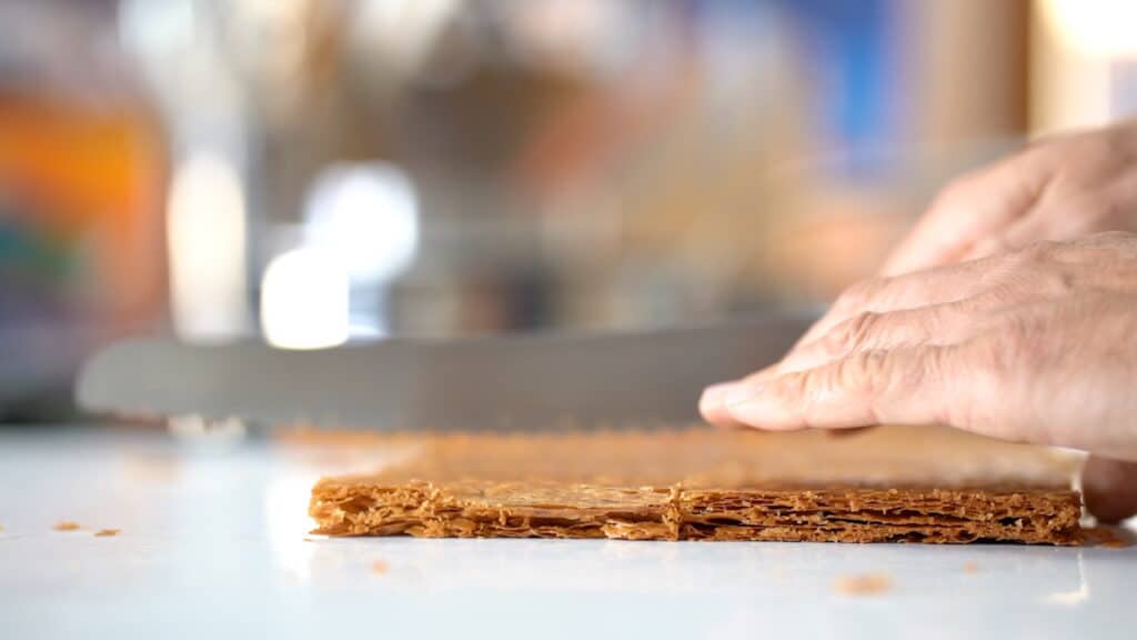 - Bake a puff pastry sheet as directed in the recipe. Store-bought puff pastry works fine otherwise.