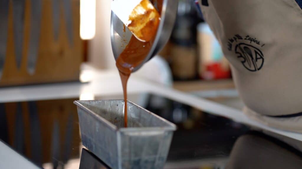 - Preheat fan oven to 330ºF/160ºC. Fill prepared pans 2/3 full (≈700g batter).