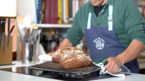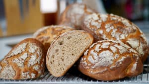 - Spray water inside the oven to create steam, then bake the loaves for 25 minutes at 430°F (220°C). Turn the oven off and carefully open the oven door to let the steam escape, then leave the breads in for 5 more minutes. Let them cool onto a cooling rack.