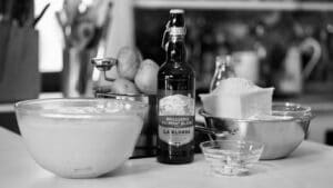 - Whisk the fresh yeast in the beer, and add flour and stir until homogenized. Set it aside.