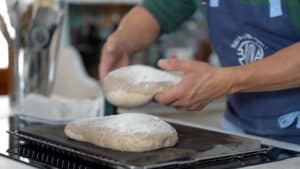 - Cover the dough and let it ferment for one hour at 77ºF / 25ºC or 2 hours at 67ºF / 19-20ºC.