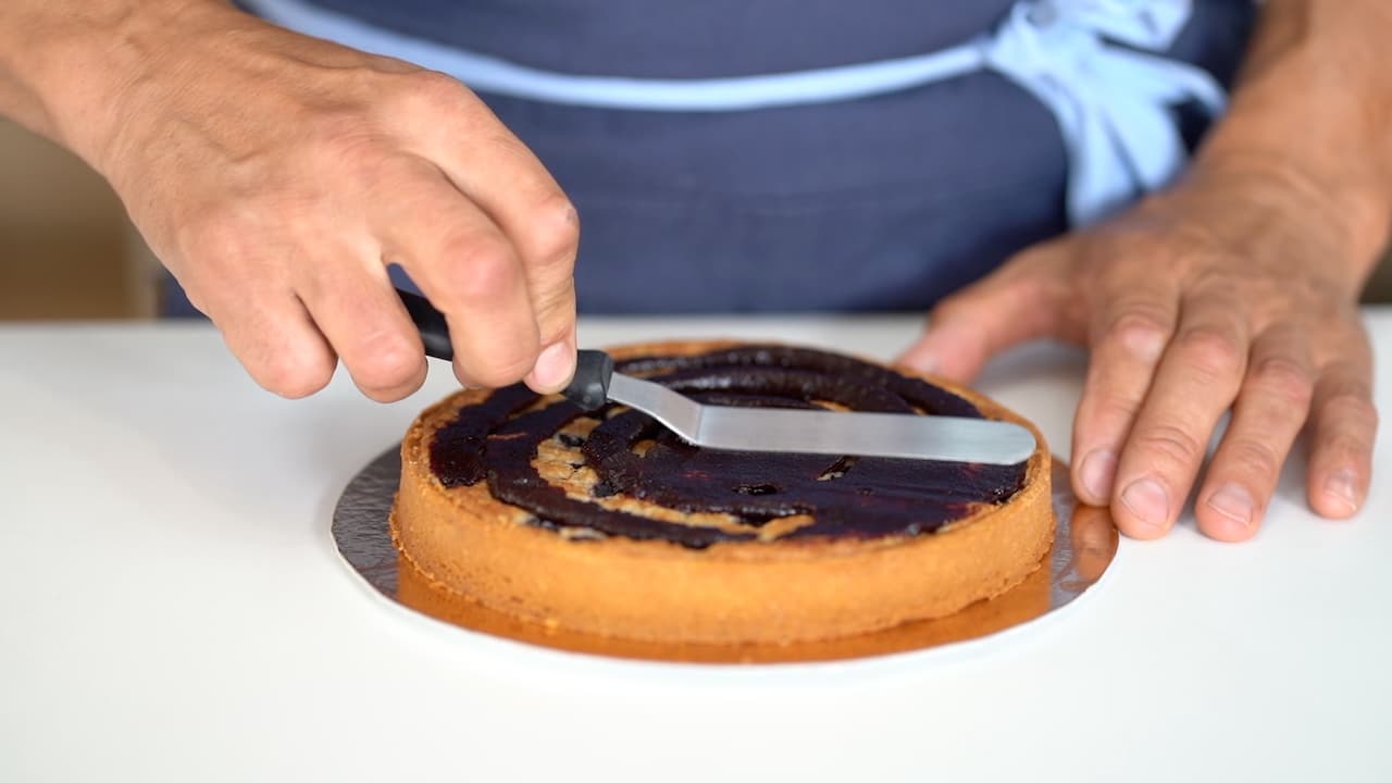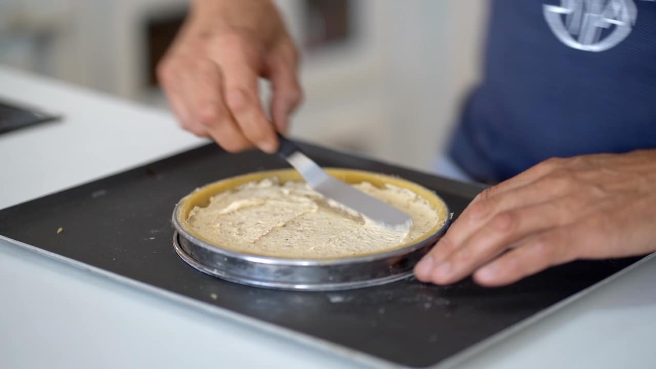 - Spread the room temperature almond cream evenly with a small offset spatula.