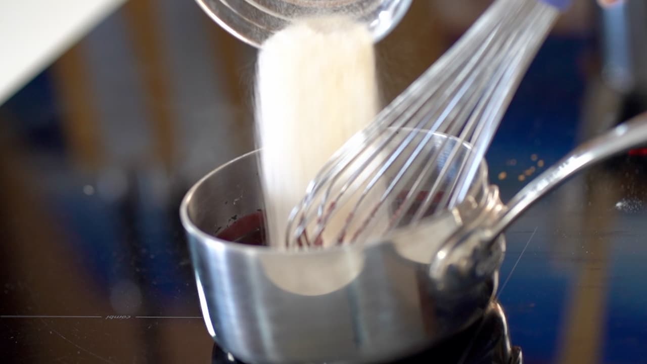 - Combine sugar with agar-agar; set aside. In a small saucepan, heat the blueberry puree along with the water. Whisk in the sugar-agar mixture – bring to a boil and cook for 2 minutes. Transfer blueberry mixture to a narrow container, let cool and refrigerate overnight to set completely.