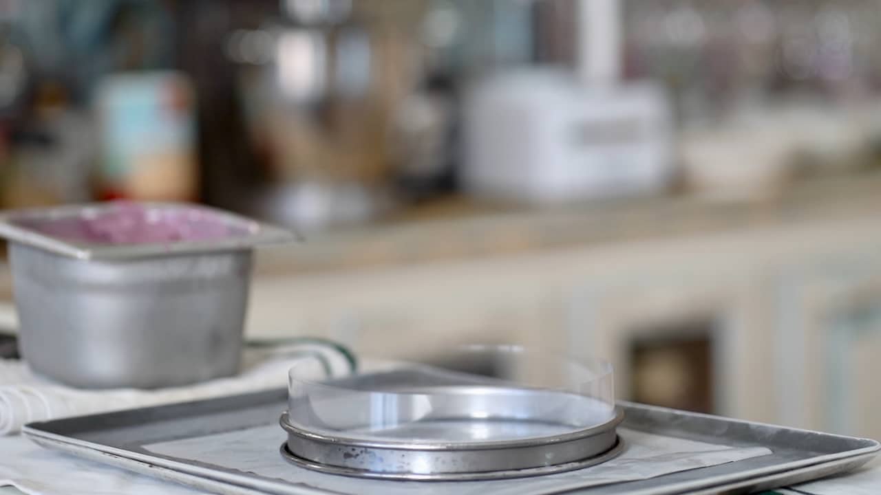 - When making frozen desserts such as Vacherin cake, ice cream is at its best straight from the machine. It's soft, smooth, and easy to scoop, but too soft to hold a shape. If you tried to pipe it, it would melt and droop. So, freeze the freshly churned ice cream for 3 hours before using. Prepare 2 clean baking trays lined with parchment or sheets made of large freezer bags. Place the tart or cake rings lined with cake collar on top, and freeze. If ice cream is already frozen, put it in the refrigerator for 40 minutes prior to use. Then work it out a bit with a large spoon to make it malleable enough to be spread.