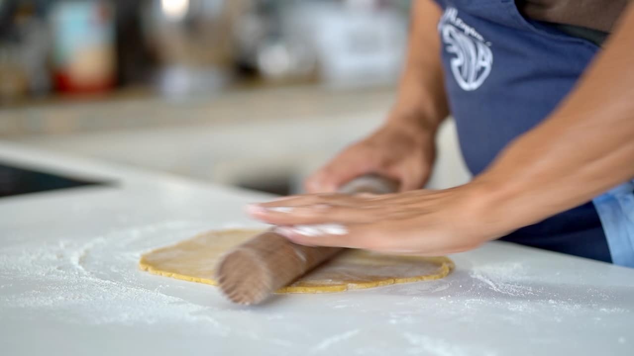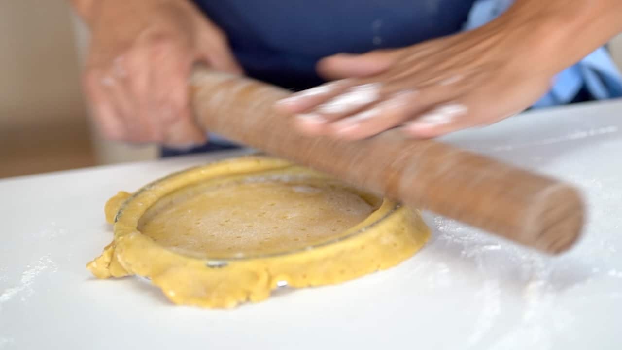- Roll the pastry into a into a 5mm thick circle (make it thicker than regular sugar dough). Freeze pastry for 10 minutes or so if it soften too fast.