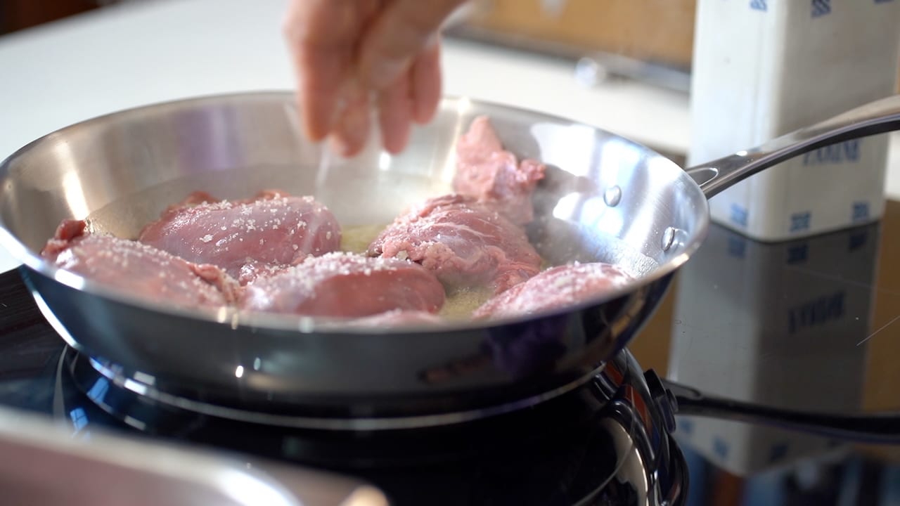 - Make 2 batches. Heat the large skillet. Add half of the fat and sprinkle some grey salt to cover the bottom pan. Lay half of the meat and season tops with more grey salt.