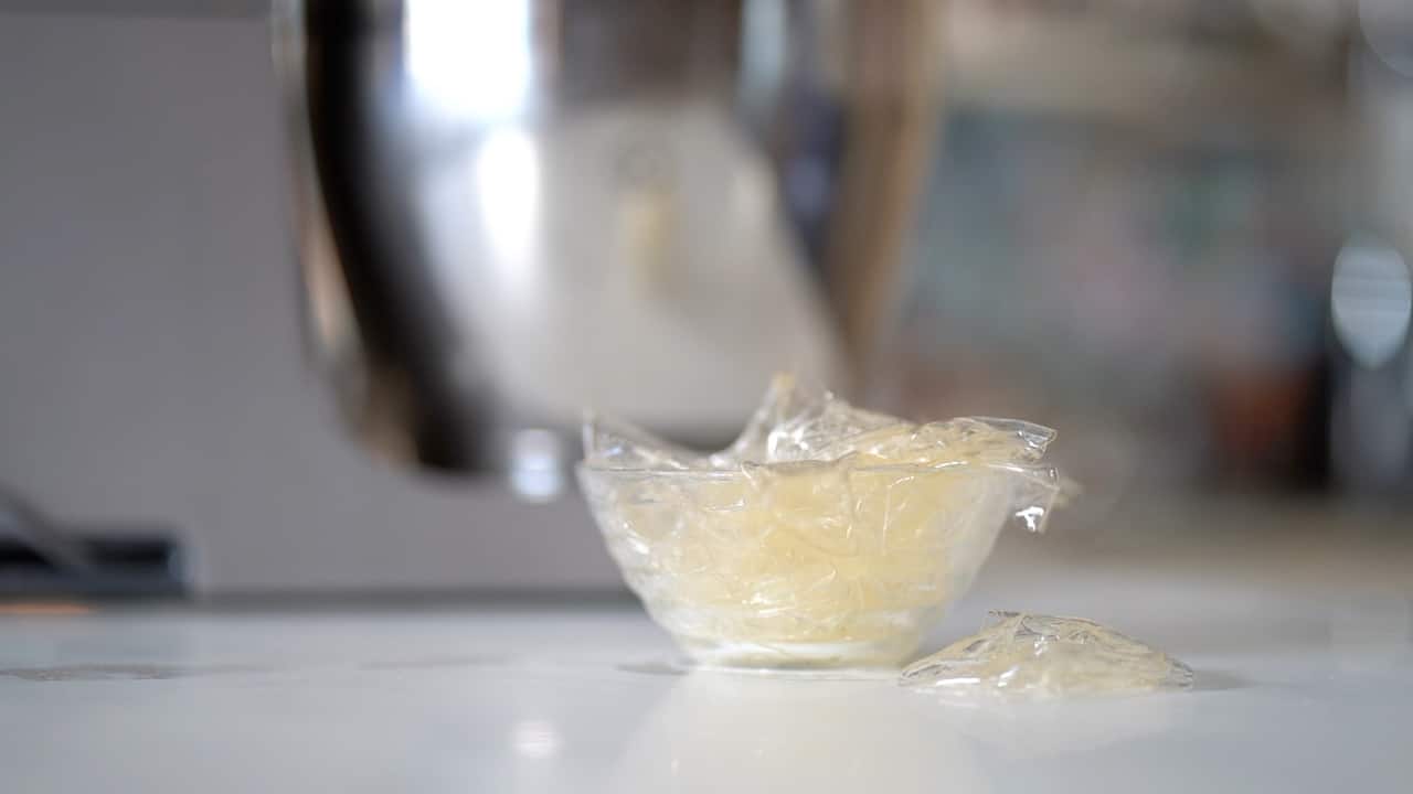 - Place your gelatin sheets in cold water one at a time, ensuring they are fully submerged. Let them soak for about 10 minutes. Drain the bloomed gelatin and squeeze out excess water; set aside.