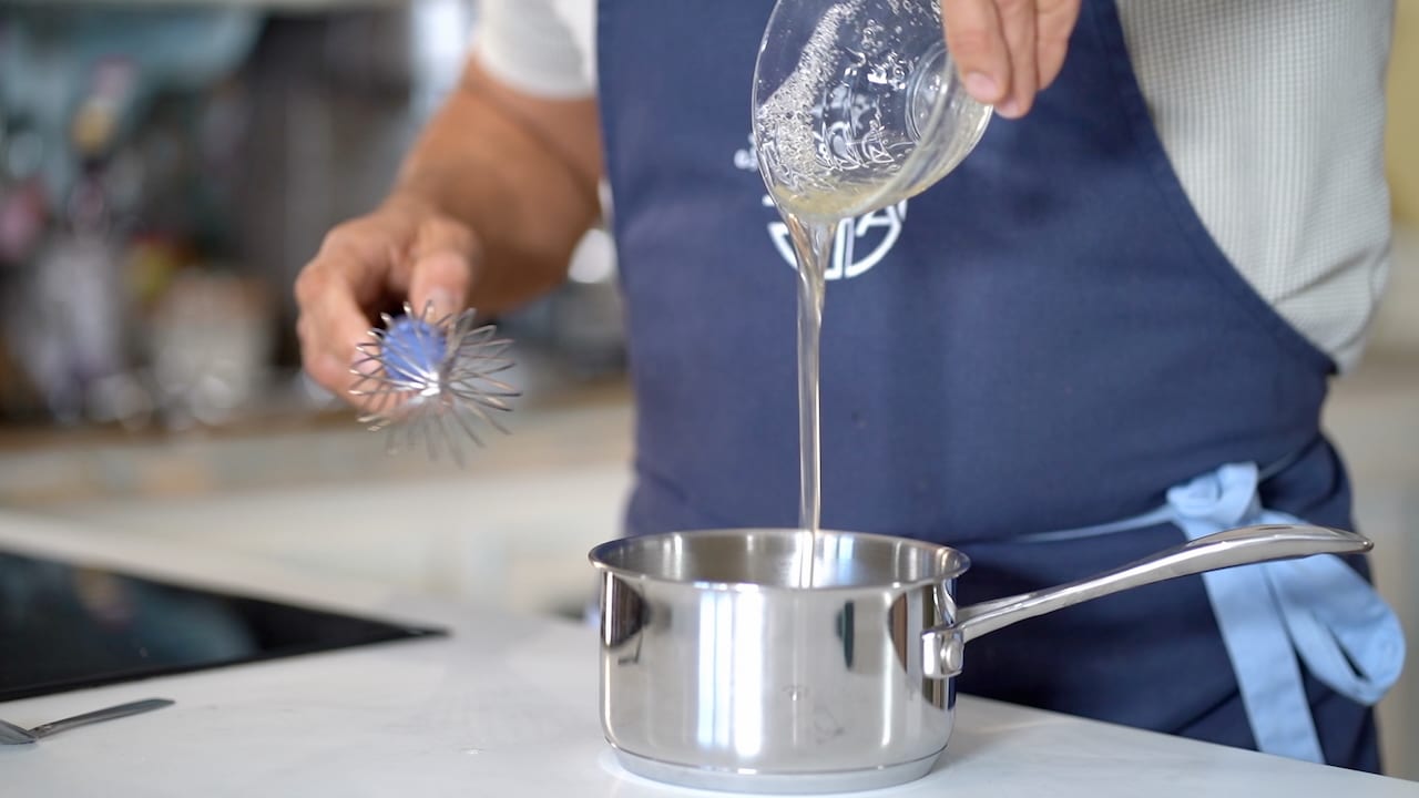 - Meanwhile, in a small saucepan heat the heavy cream to 113ºF/45ºC. Melt the previously bloomed gelatin for a few seconds in the microwave, or over a bain-marie (avoid overheating it).