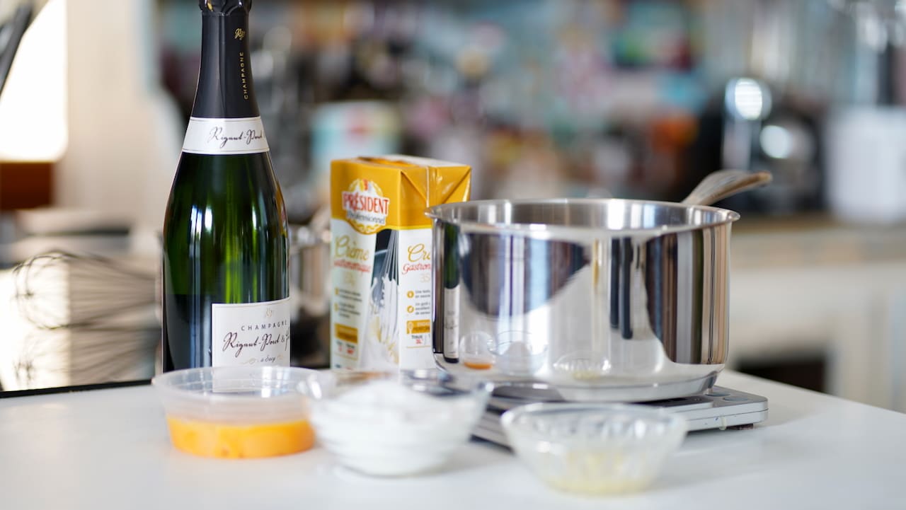- Sabayon: In the large saucepan, gather the Champagne along with the lemon juice, sugar and egg yolks. Cook on medium heat until your digital thermometer reads 185ºF/85ºC.
