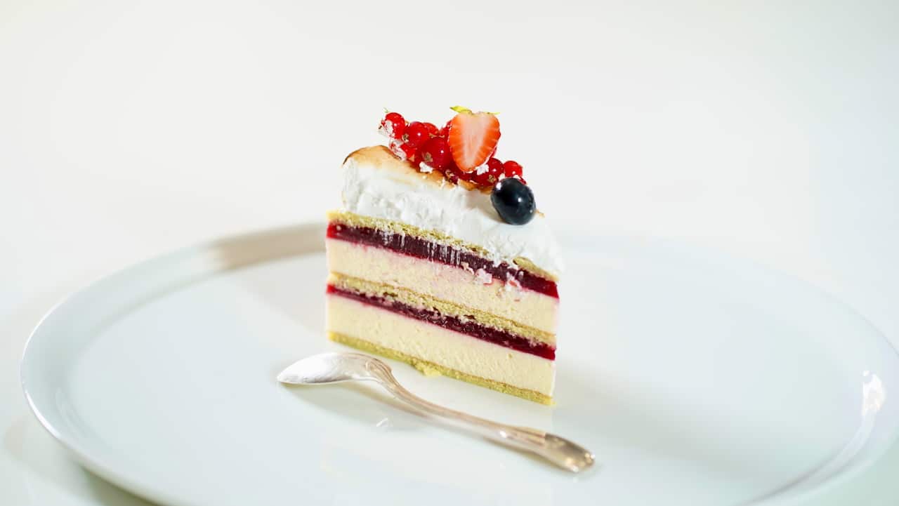 - Torch the meringue. Let thaw the cake overnight in the refrigerator. Decorate cake with red fruits if desired.
