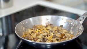 - To cook chanterelle (frozen or fresh), add them directly to a hot, dry pan. Season with salt and sauté over high heat for 2 minutes to evaporate most of the moisture. If there is excess liquid, drain it off. Return the mushrooms to the hot pan, add a drizzle of olive oil (or other fat such as butter or duck fat), and cook for about two minutes. Add some minced shallots and cook for another two minutes. Deglaze the pan with a splash of white wine or Vermouth, reduce and finish with a splash of heavy cream if desired.