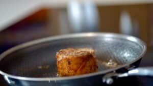 - Place a baking tray in the freezer. Yet, in the same skillet you have seared the meat, cook bacon in butter for 5 minutes on medium heat. Add shallots and cook until fragrant. Add salt, pepper and the mushrooms and cook for 5 minutes on high heat. Add porcini powder and the cooked chestnuts – sautée for a couple of minutes.