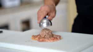 - Soak bread crumbs or brioche in milk – keep refrigerated until ready to use.
