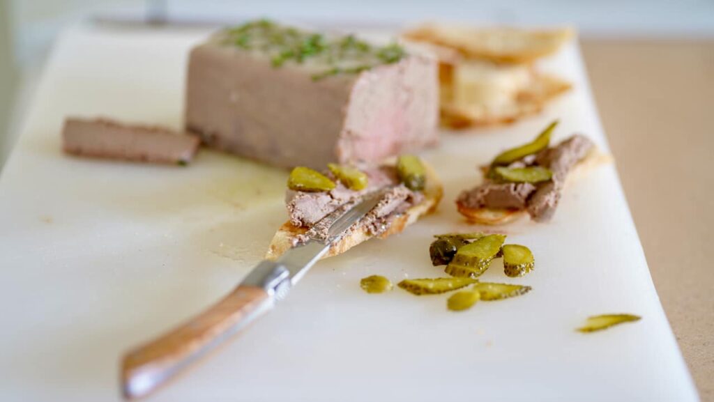- The night before serving chicken liver parfait, unwrap frozen pâté and place in the refrigerator to thaw a few hours. Serve with toasted bread and cornichons. Enjoy!