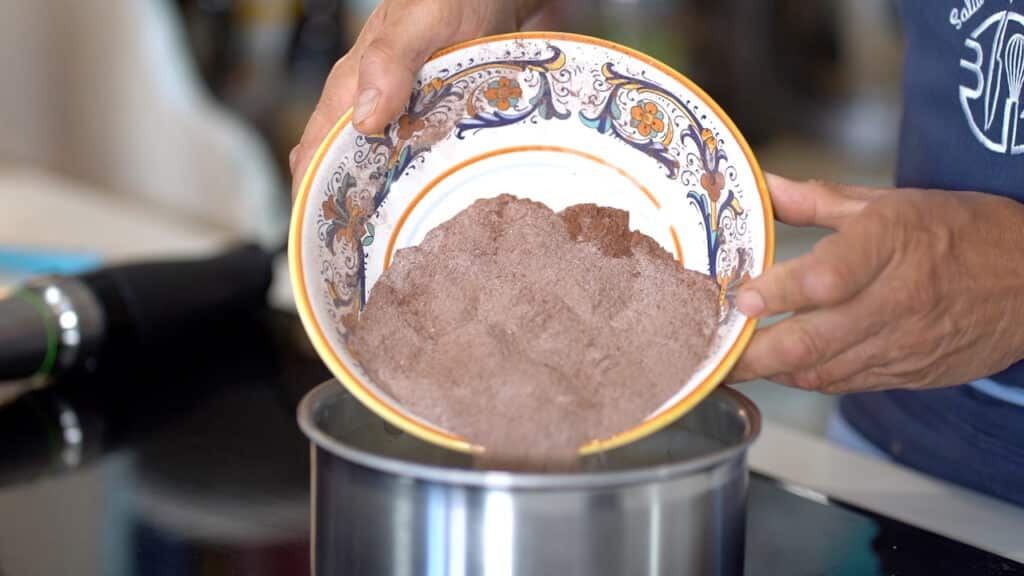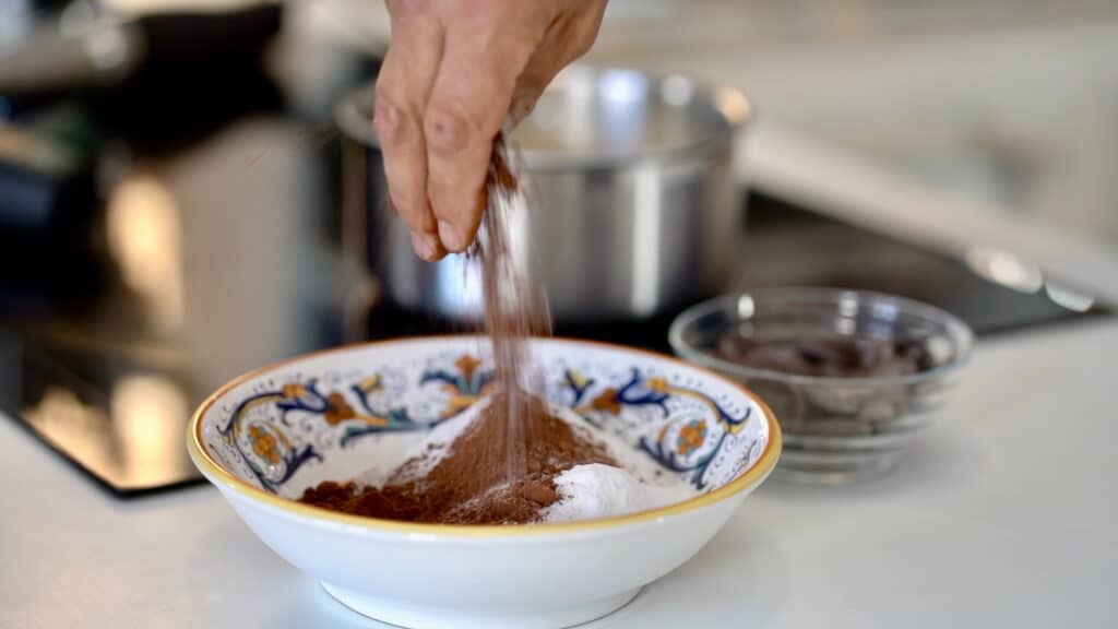 - Mix all dry ingredients together: Sugar, dextrose, cocoa powder, stabilizer and salt.