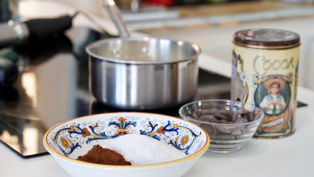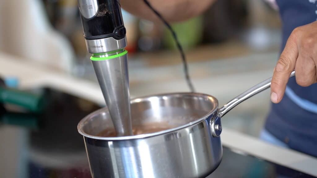 - Heat milk and heavy cream at 104ºF/40ºC. Add dry ingredients and mix with the immersion blender.