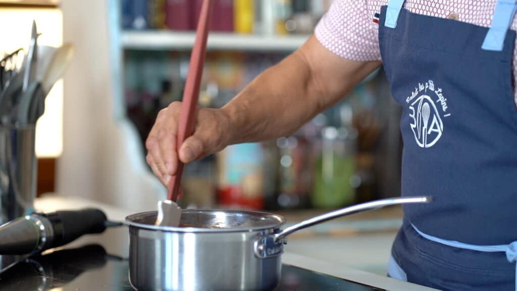 - Cook to 185ºF/85ºC, stirring constantly with the rubber spatula.
