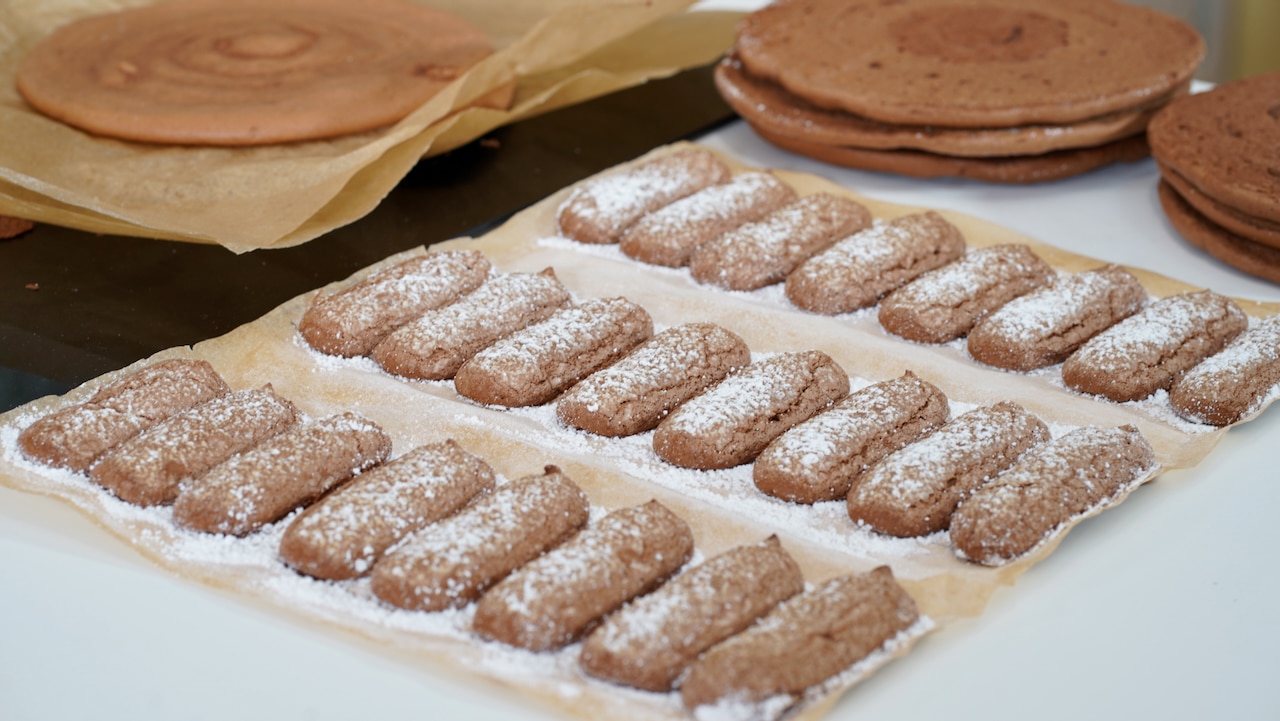 - Transfer to the oven and bake the chocolate ladyfingers and sponge disks for 10 to 12 minutes, until set. Let cool then refrigerate for a day or freeze (wrapped in plastic film) for up to 3 months.