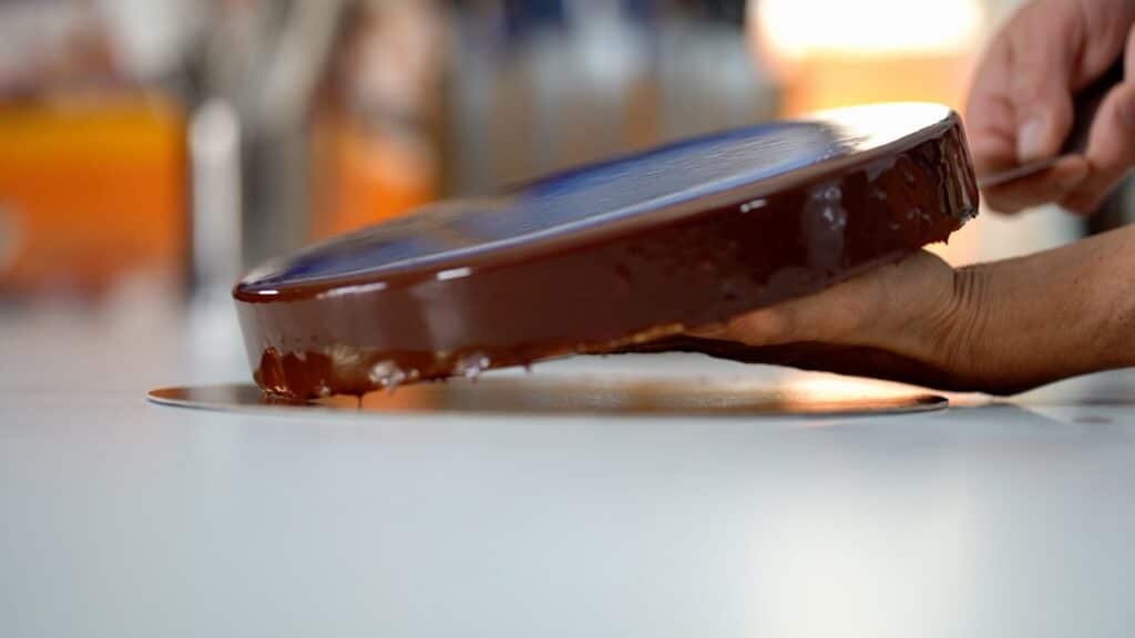 • When stored properly in an airtight container, chocolate mirror glaze can be kept in the refrigerator for up to about 2 weeks and even frozen for up to 6 months. However, every time you reheat and reuse the glaze—especially beyond twice—the risk of incorporating extra air increases, leading to more visible bubbles that can affect the smooth, reflective finish of your cake.