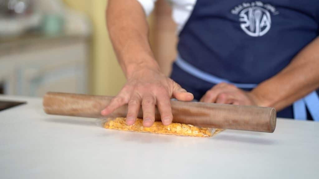 - If using corn flakes; crush them first. A one-to-one ratio of corn flakes and wafers can be used to make your crunchy praliné.