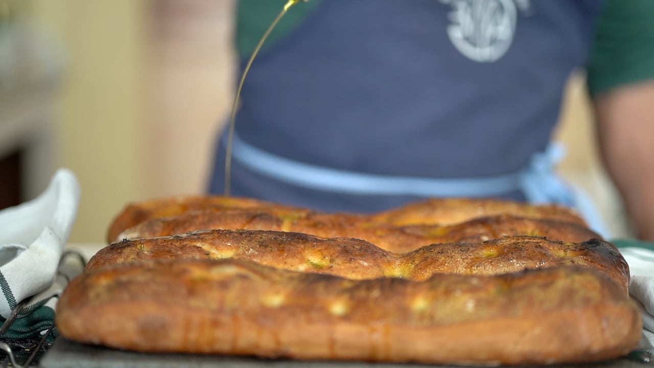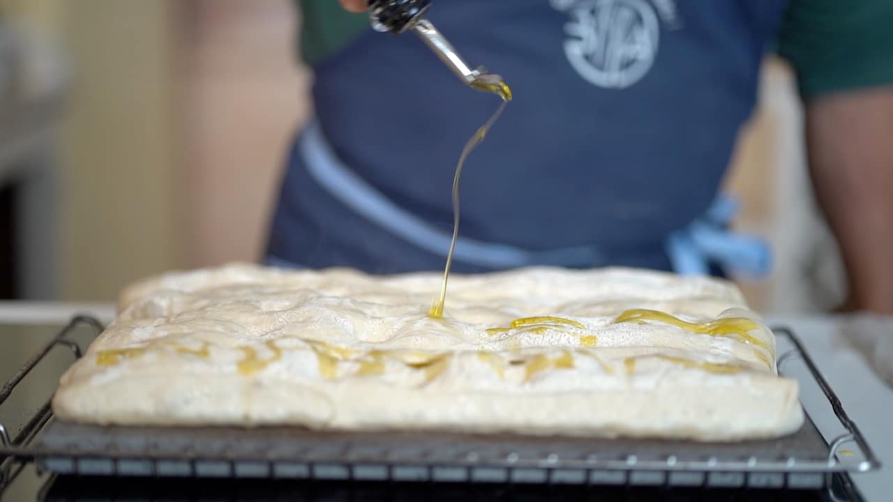 - Right after baking, season the ciabatta with more olive oil and herbs. Transfer it to a wire rack to cool. Immediately, reheat the oven to the same temperature and repeat the baking process for the remaining ciabatta.