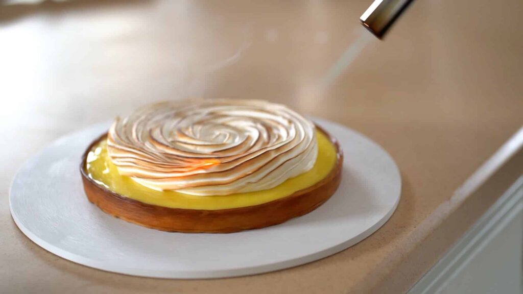 - There are 2 ways to toast meringue. Using your kitchen blowtorch, or freeze the pie for 30-40 minutes. Preheat fan oven to 435ºF/225ºC, and toast pie for 3-6 minutes – it does it fast!. Garnish pie with lime zest or candied lemon peels if desired.