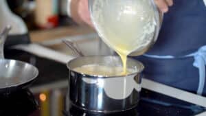 - Pour the mixture back to the saucepan. Return the custard to medium heat.