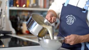- Transfer the crème anglaise to the frozen bowl. Set the bowl over an ice bath to cool it quickly.