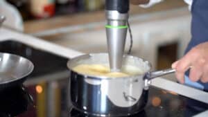 - Blend custard with the immersion blender.