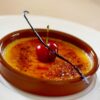 • Uncover ramekins, if condensation has collected on custards place a paper towel on the surface to soak up moisture. Sprinkle each with about 1.5 teaspoon white fine sugar or raw sugar, tilt and tap ramekin for even coverage. Caramelize sugar with a kitchen torch rotating the ramekin as it caramelizes. Repeat with a bit more sugar if to get a stronger crust. Garnish with seasonal fruits and dry vanilla pod. Serve immediately.
