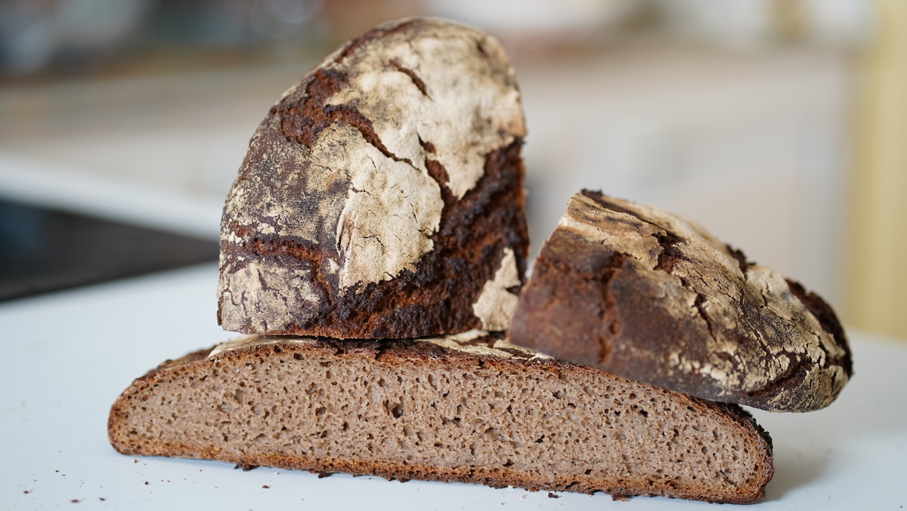 - The rye flour used is categorized by extraction rates: 70, 85, 130, and 170. The higher the number, the darker and more whole grain the flour. A unique hot water technique is used to achieve the bread. During mixing, the dough has the consistency of sticky cement.
