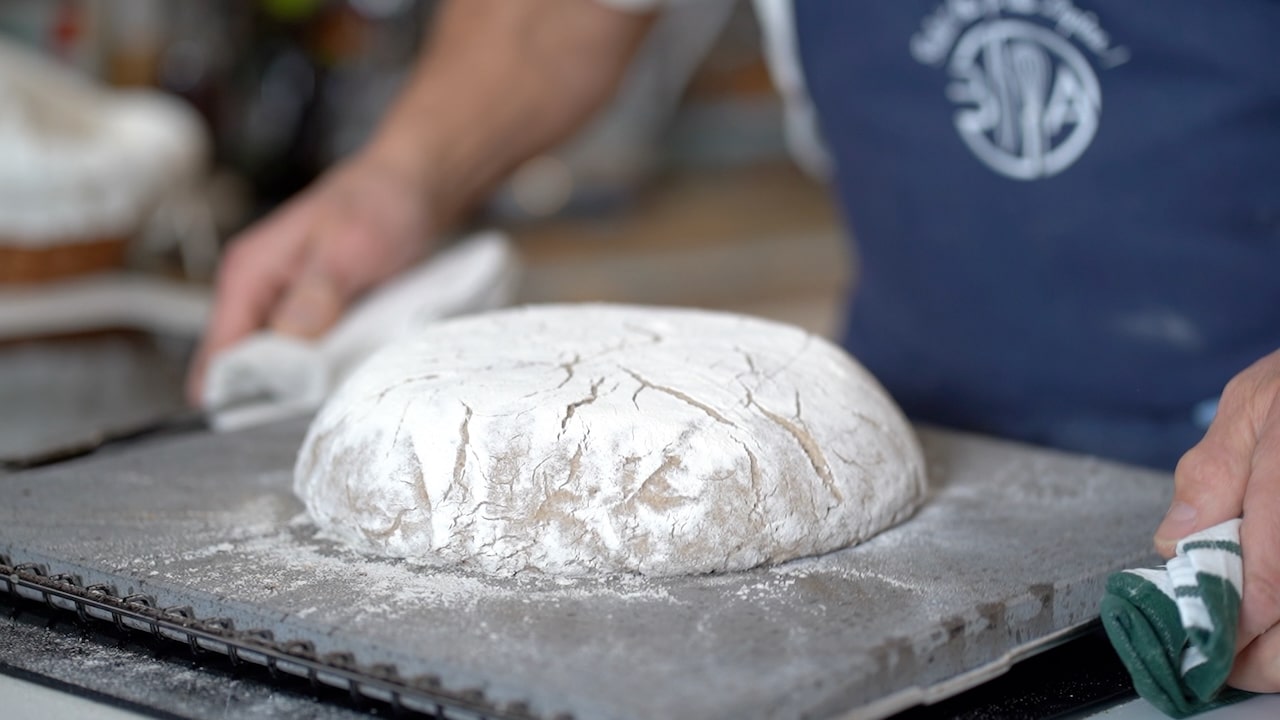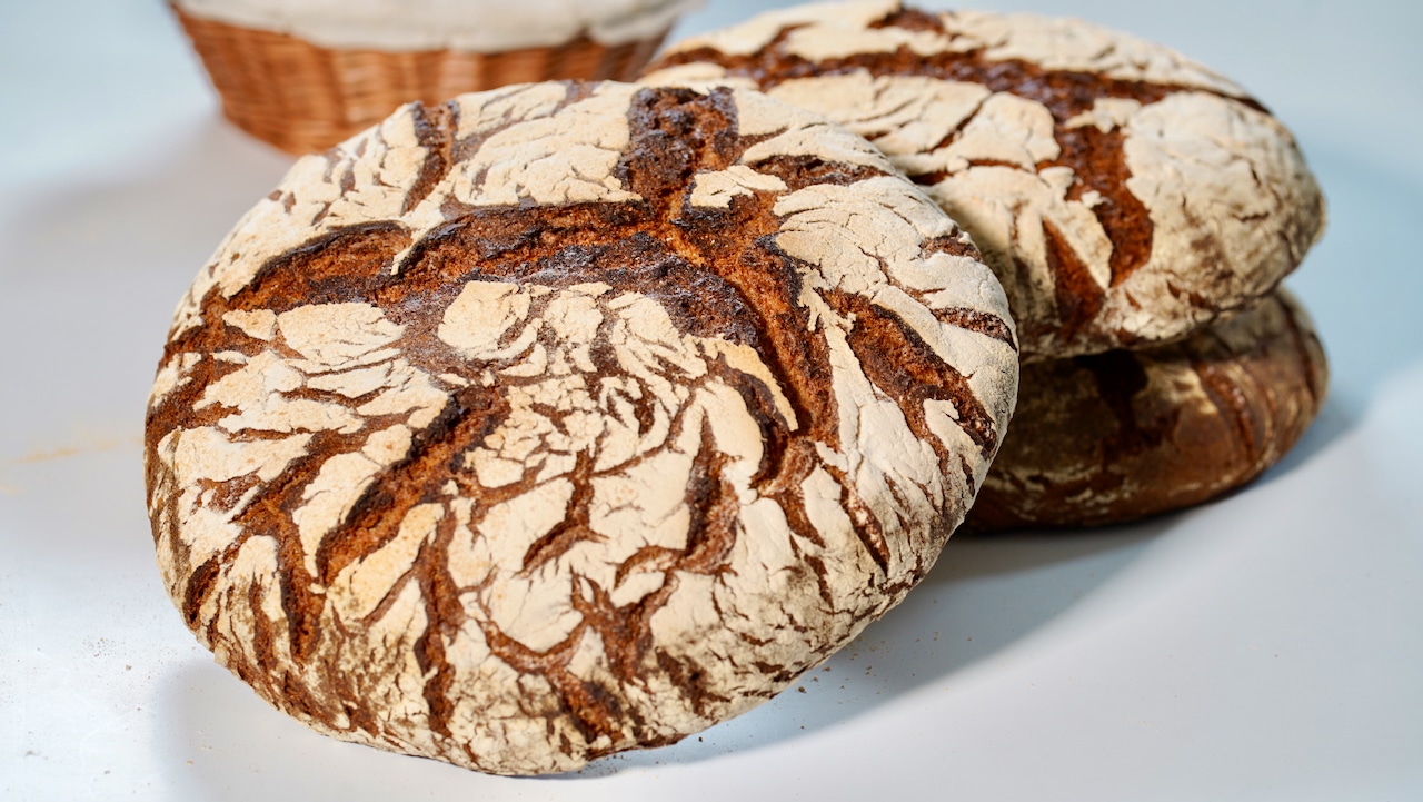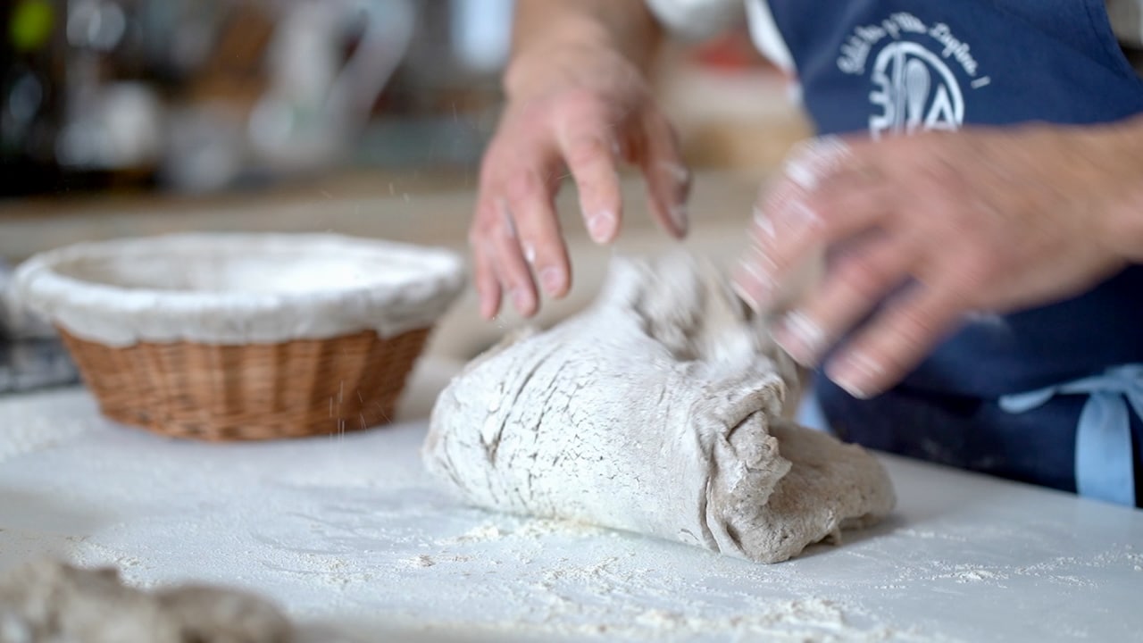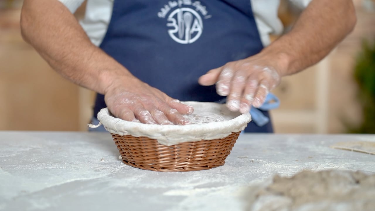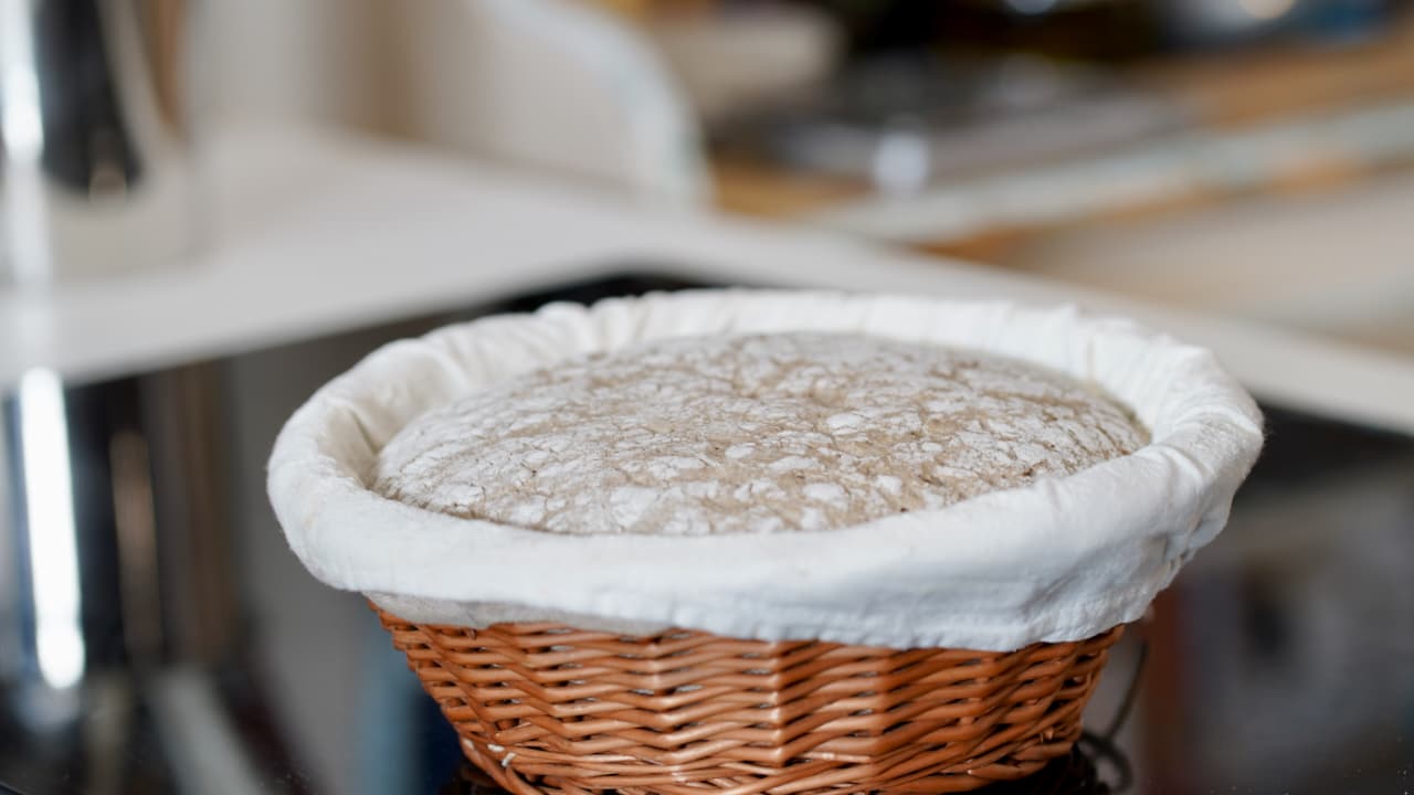 - Flour proofing baskets with bread flour. Turn the dough out onto a floured work surface and divide it into three equal portions (1230g each).