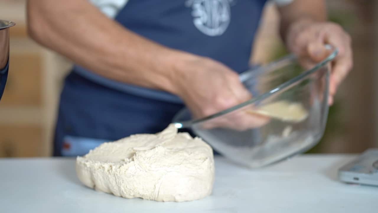 - Lightly flour the dough, then fold it over a few times to form a loose round. Because the dough is fragile and tears easily, be sure to handle it gently.