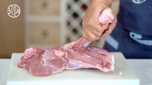 - Using the tip of your knife, start cutting the meat away from the large bone. Work from the top of the bone down to the joint, keeping the blade as close to the bone as possible to avoid wasting meat. Use your free hand to pull the meat back as you free it.