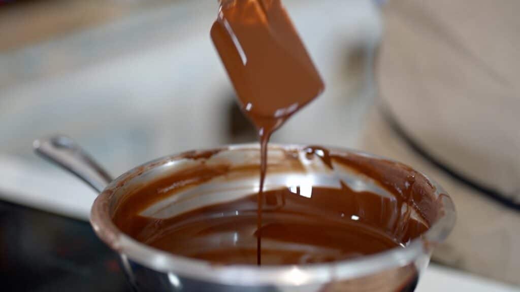 - Lower the heat, and stir up every so often until the cocoa-butter-chocolate mixture is completely melted.