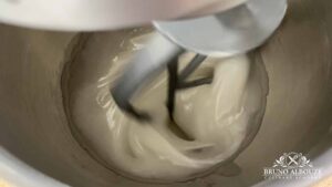 - Cook sugar, water and glucose to 244ºF/118ºC. Cool off bottom saucepan in cool water and wait until syrup temperature reaches 167ºF/75ºC. In the stand mixer fitted with the paddle attachment, mix syrup on low speed for a few minutes. The color is going to turn whiter and the mixture thicker. As soon as this begins to happen, stop mixer immediately. Keep an eye on it – it happens fast!. Transfer fondant mixture onto countertop using a metal dough scraper (wear household gloves). Work out fondant for a few minutes called ''graissage'' it should become more supple and glossy.