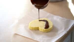 - Preheat fan oven to 330ºF/160ºC. Bake flat biscuit for about 20-25 minutes. Let cool, and flip onto a parchment paper. If using cake pan, bake for 30-35 minutes or until an inserted blade comes out clean. Let cool and chill overnight.