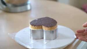 - Flip fraisier over a flat plater or cake board, and remove the plastic.