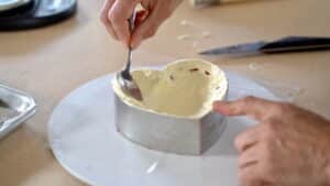 - Fill up all empty spaces with mousseline, and smooth out with a spoon or a dough scraper.