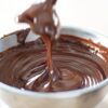 - Pour one-third of the hot liquid into the melted chocolate, and stir well. Once mixture is homogenized, it may begin to solidify but it is normal. Incorporate half of the remaining liquid, and do likewise until done.