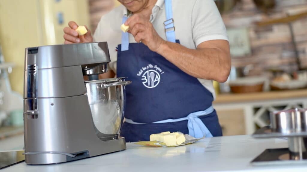 - Gradually add the cold, cubed butter into the custard while beating continuously. Mix until the mousseline becomes smooth, fluffy, and perfectly emulsified. By the end, ensure the temperature does not exceed 59ºF/15ºC—this guarantees the ideal silky texture.