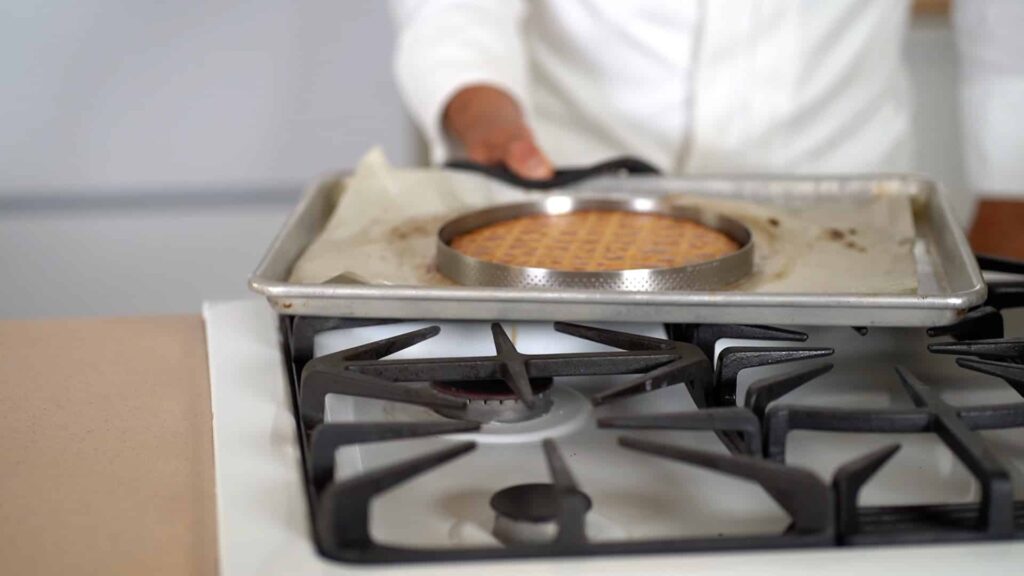 - For neater results, bake sablé breton inside a pastry ring at 425ºF/220ºC for about 15 minutes. Lower temperature to 375ºF/190ºC if using convection oven. Keep an eye on it!. Let cool off and carefully slide over a cooling rack.
