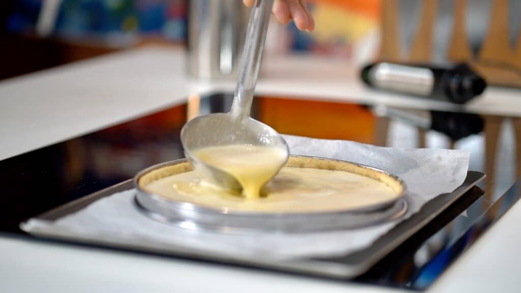- Blind bake sugar dough crust for 20 minutes at 330ºF/160ºC. Set aside.