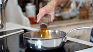 - Melt butter in a sauté pan. Add thyme and crushed garlic, shallots and sweat the chopped cremini mushrooms over medium heat for about 4 minutes. At this point, you can add a splash of alcohol to the pan, such as Chardonnay, port, cognac, or vermouth.
