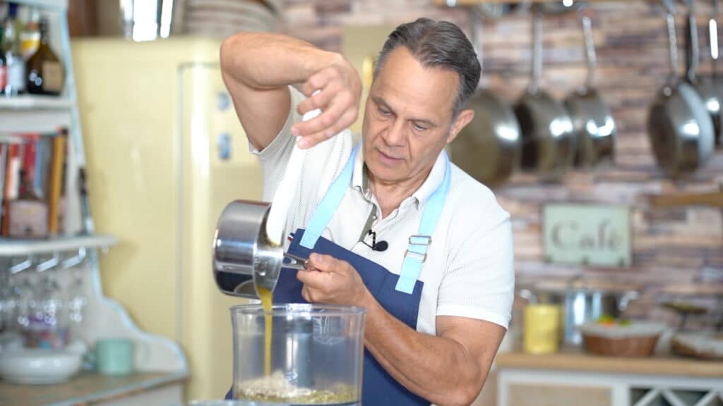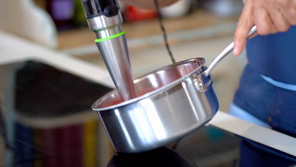 - Turn chilled strawberry jelly to a smooth jelly with your immersion blender.